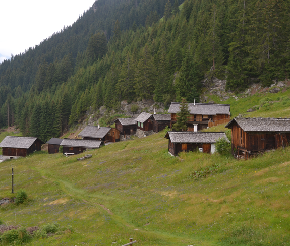 Ausgehend von der Bergstation der Tafamuntbahn führt uns der Weg zuerst zu den Tafamuntmaisäßen. Diese Maisäßlandschaft oberhalb von Partenen ist unbedingt einen Besuch wert. Bei der Abzweigung halten wir uns links in Richtung Motta/Partenen. Der Weg führt eher steil über Serpentinen und durch den Wald bis nach Partenen hinab.